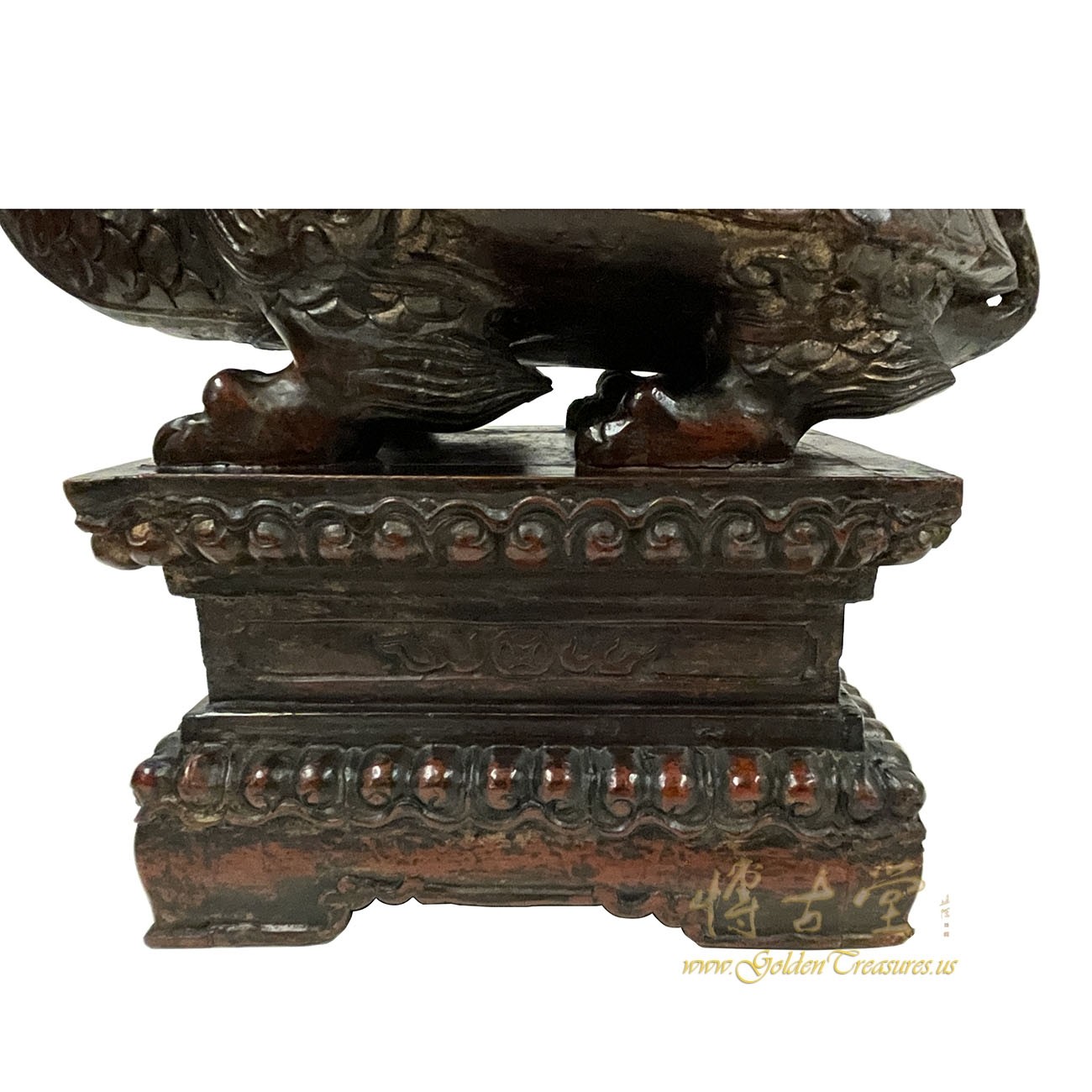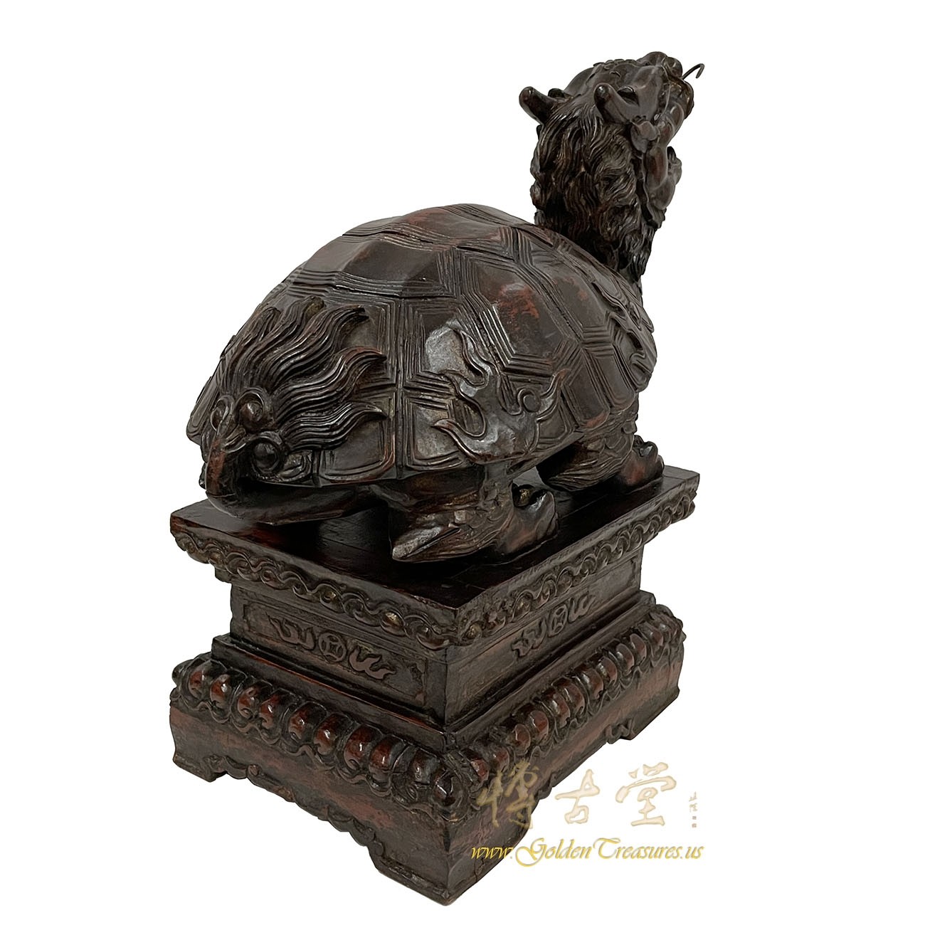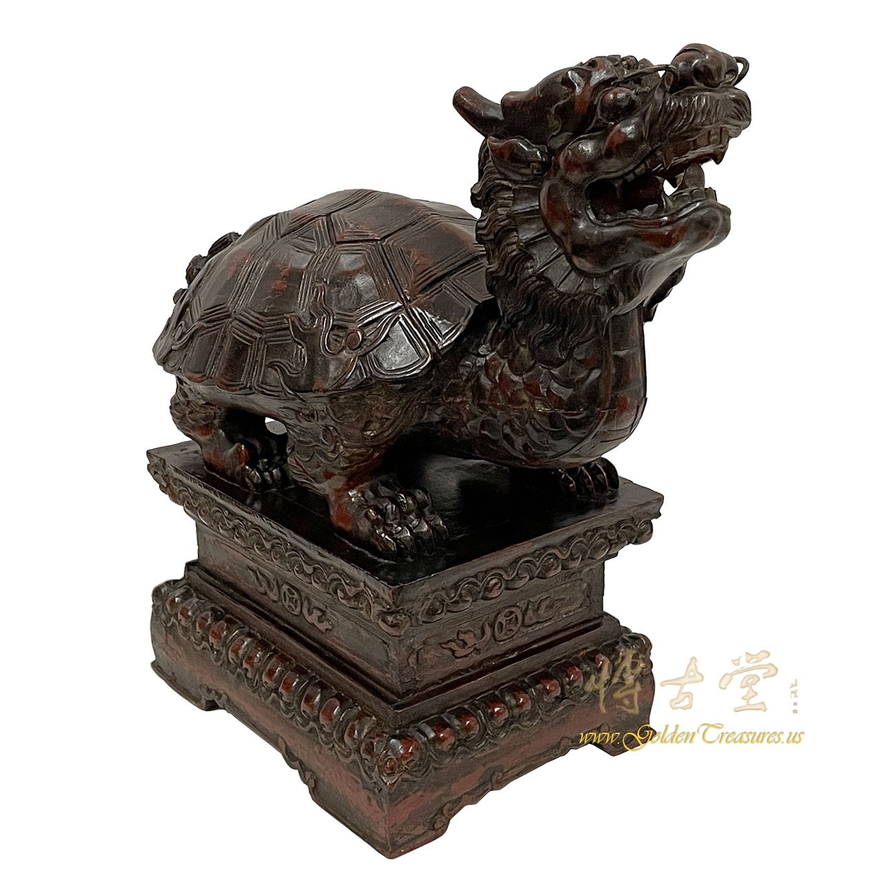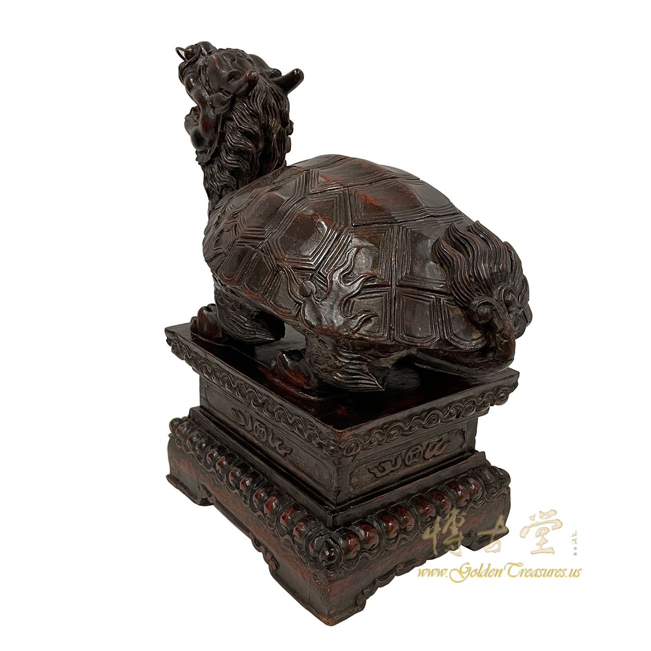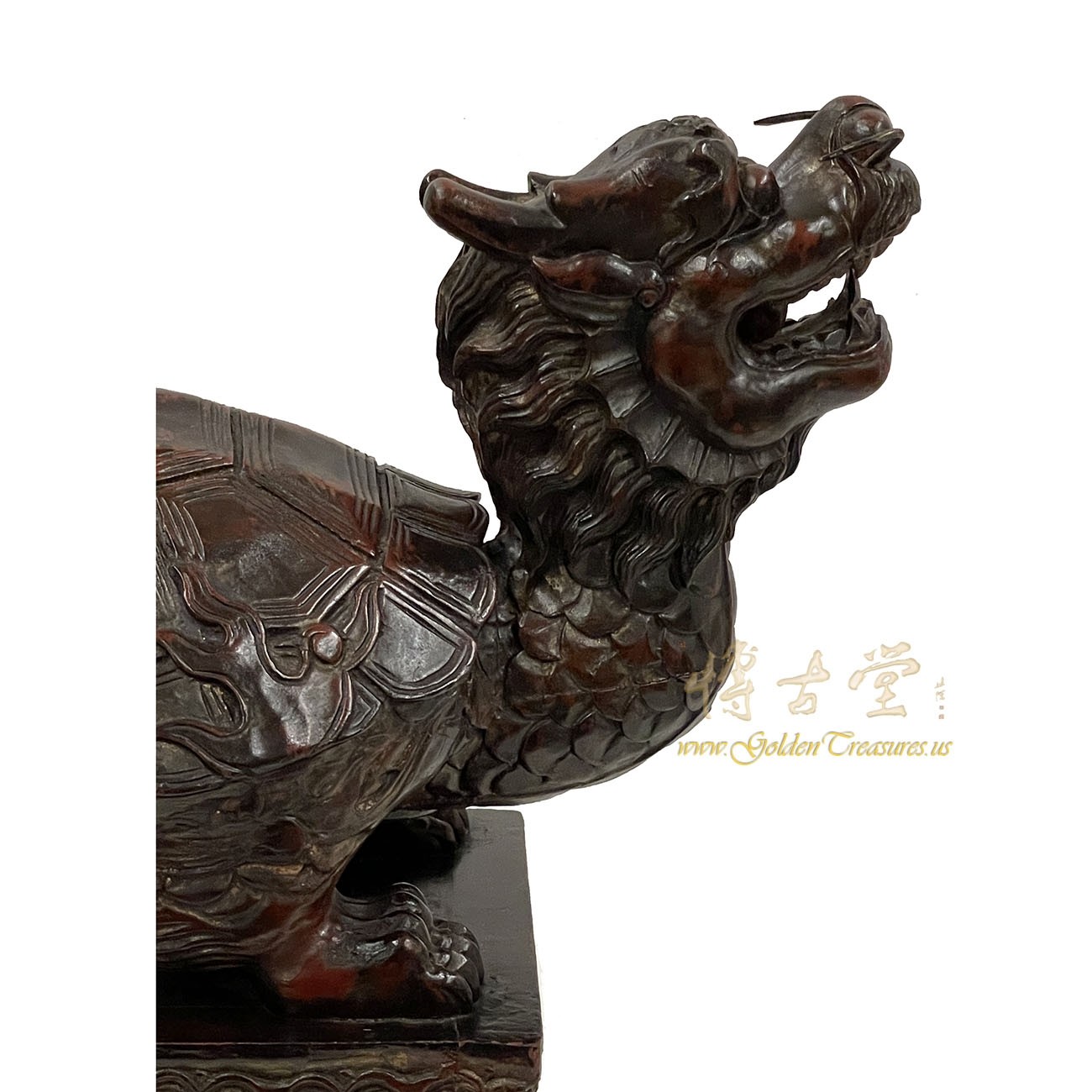 Look at this magnificent Chinese Antique Wood Carved Dragon Turtle Sculpture. It shows very detailed hand carving works on it. It is all hand made and hand carved. It was the mascot in the imperial family, meaning the supreme power. You can see from the pictures that it is in many years history with some age wears. Now you can have them on your collection shelf. It is not only a great adornment but also a wonderful gift! own it now!Disclaimer: Due to differences in monitor/screen settings, product colors may differ slightly between product photos and the physical product.