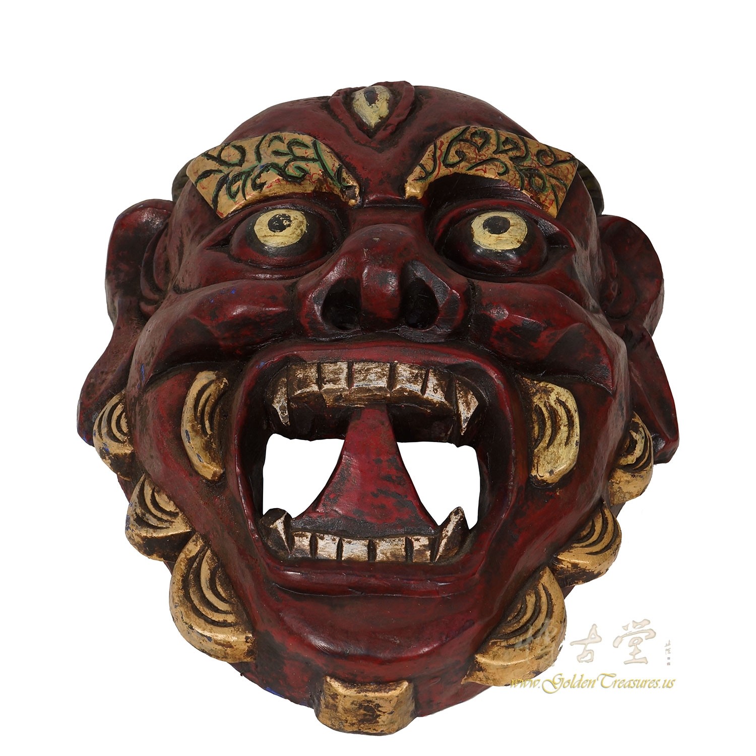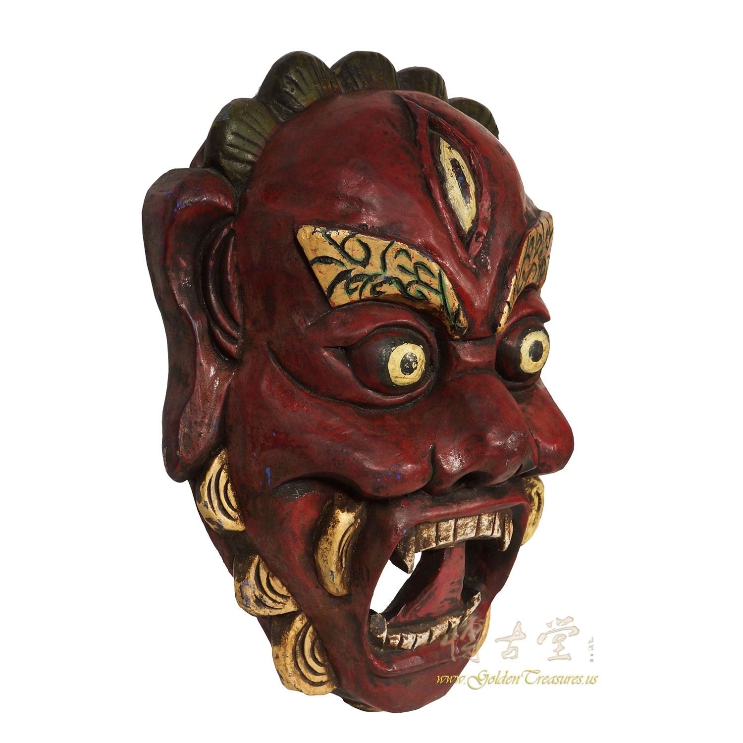 Condition: Original finished, hand made, normal age wear.This is handcrafted Tibetan Shaman Protector Wood Mask with red paint. Buddhism Powerful Protector mask. Fine craftsmanship and sturdy construction made it a beautiful home decor or gift.