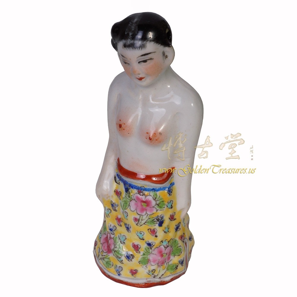 Condition: Original condition, hand made, hand paint, normal age wear.A Chinese Antique porcelain perfume bottle shaped like a nude woman. Circle in hair is the bottle stopper.