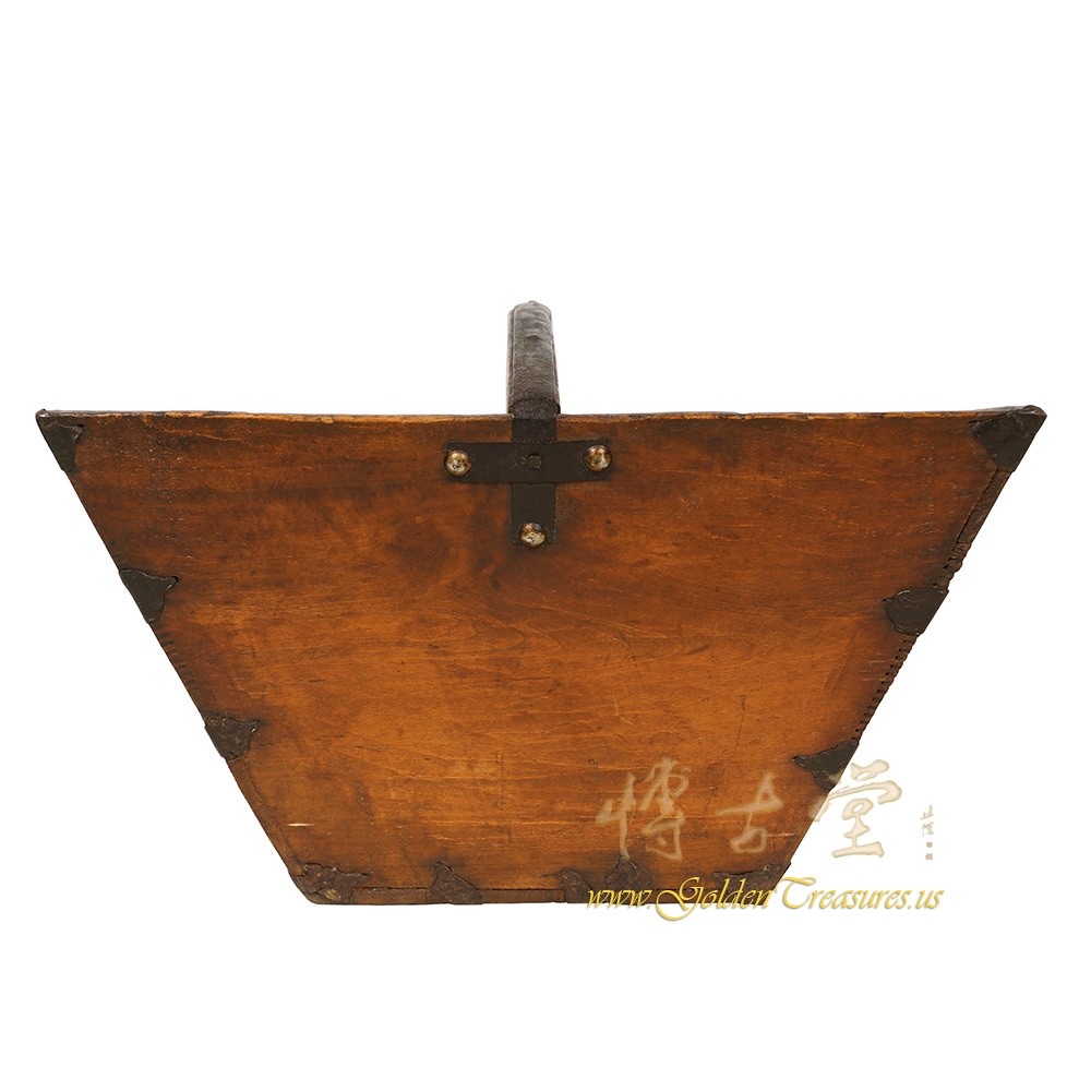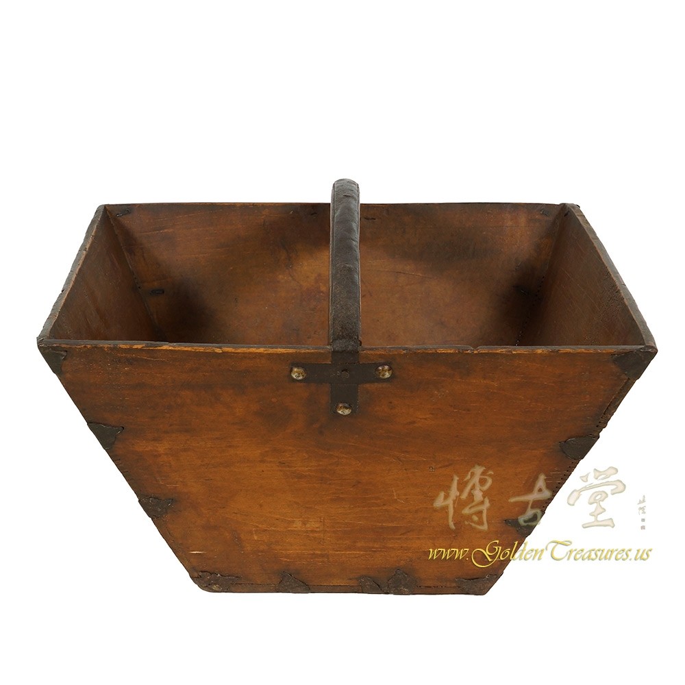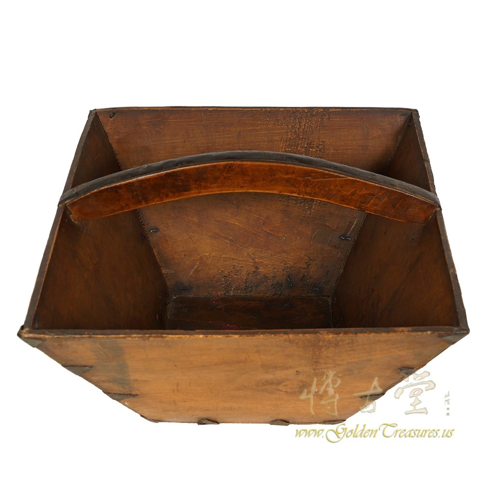 Look at this primitive Chinese Antique Official Wooden Rice Measurement Basket "Dou". It is 100 percent hand made and has about 140 years history. You can see the joints are connected by antique metal hardware and wood joints together. It is a unique hand made piece of art. You can use it as flower baskets or magazine tray. It will be a wonderful decoration piece and collection at your home. - Additional Information