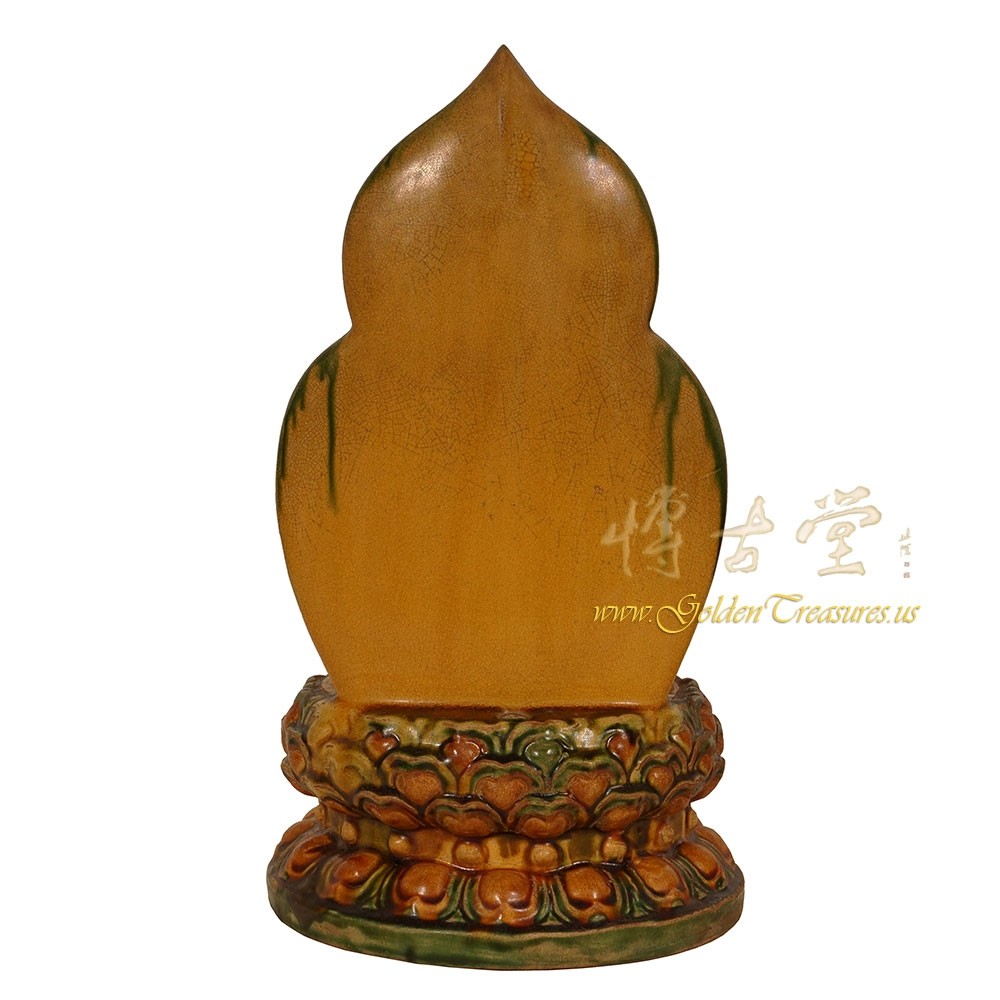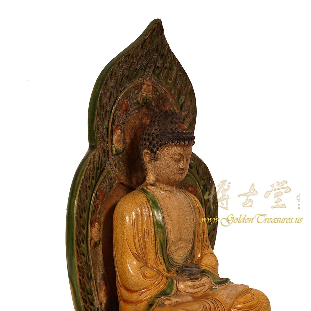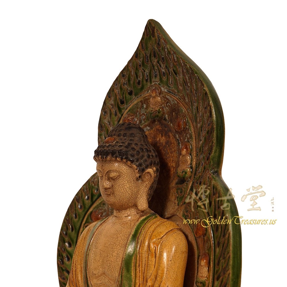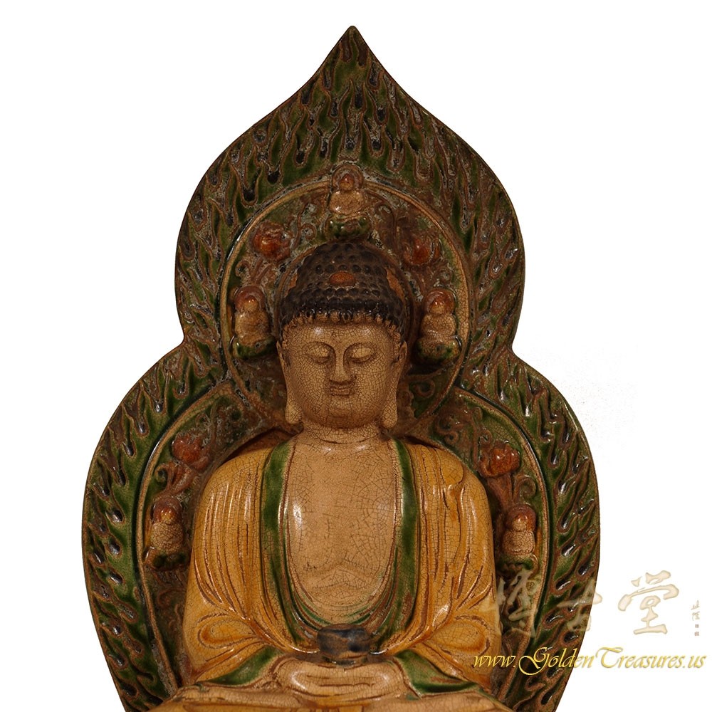 Condition: Original finished, hand made, very good vintage condition with normal age wear.Look at this magnificent vintage Chinese glazed ceramic Buddha Statuary. It shows very detailed hand carving works on it. It is all hand made and handcraft Buddha seating on the lotus seat. You can see from the pictures that they are in many years history with some age wears. Now you can have them on your collection shelf. They are not only a great adornment but also a wonderful gift! Don't miss it.