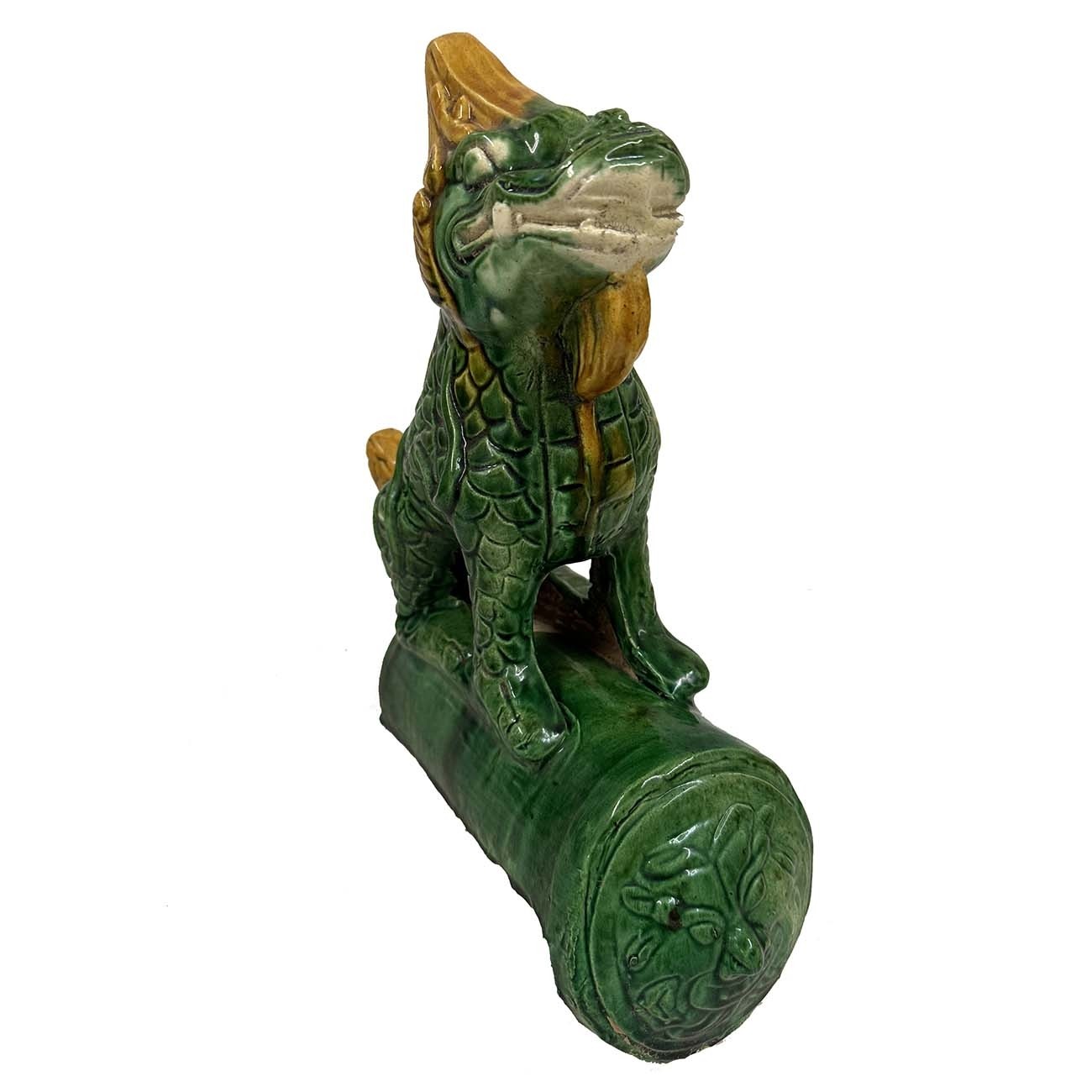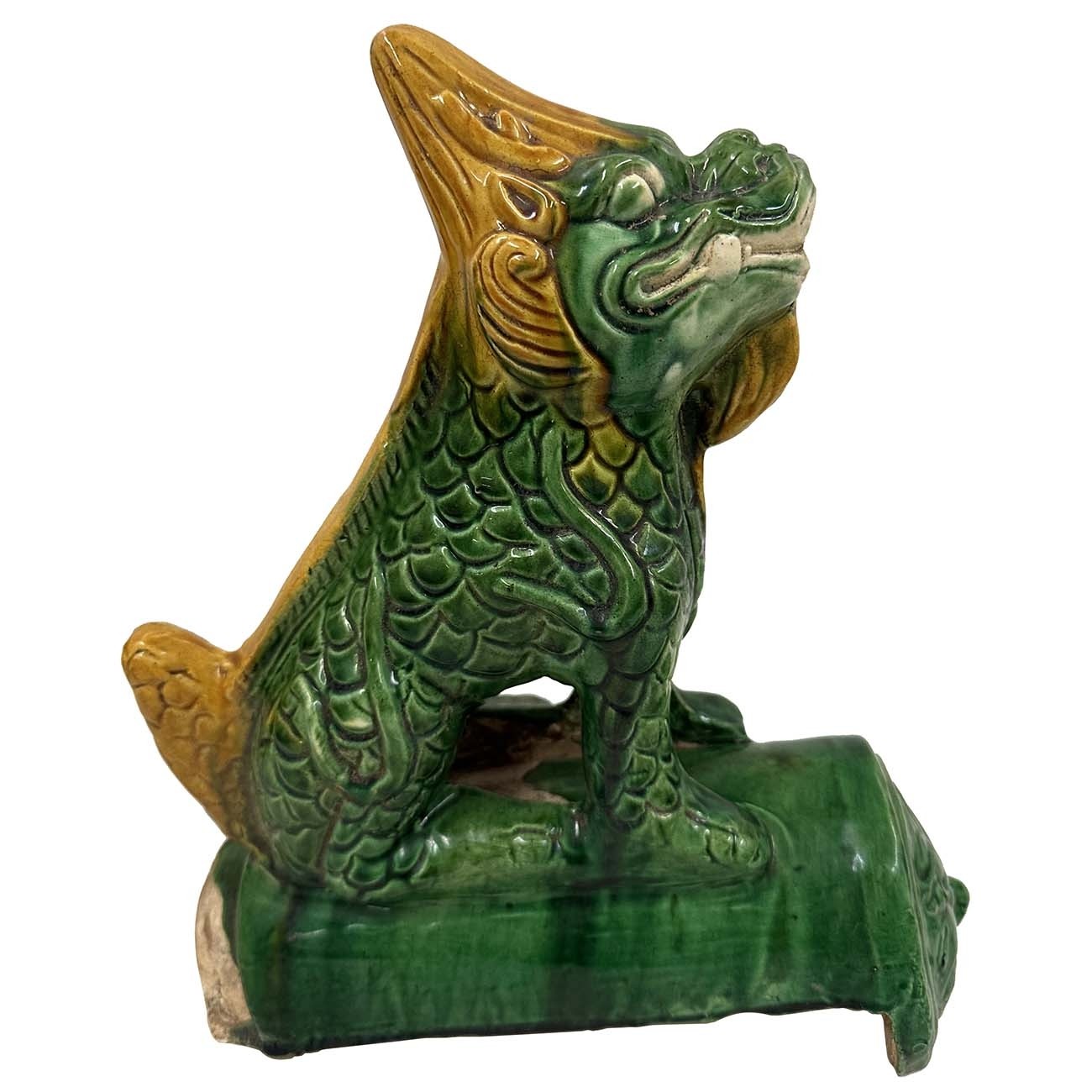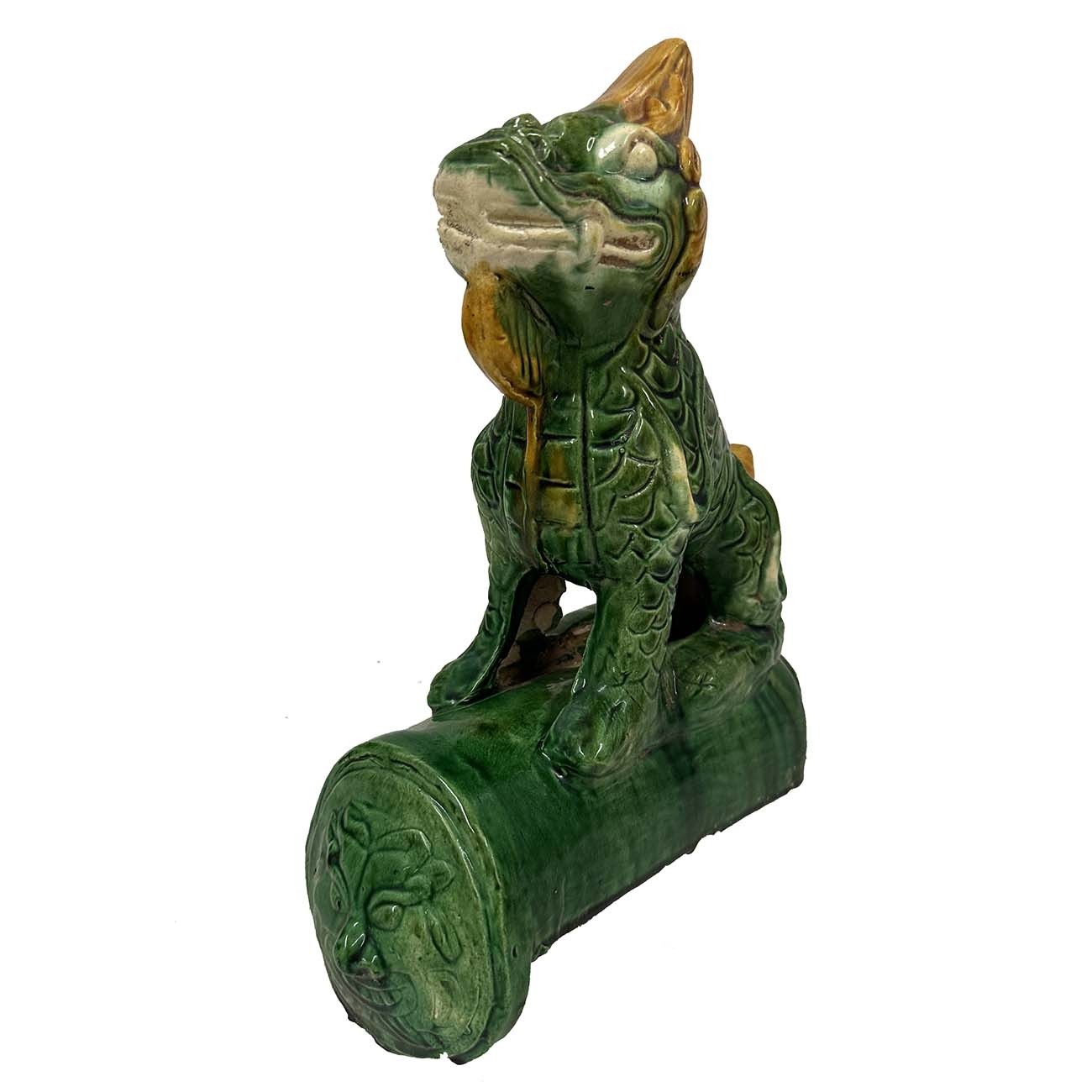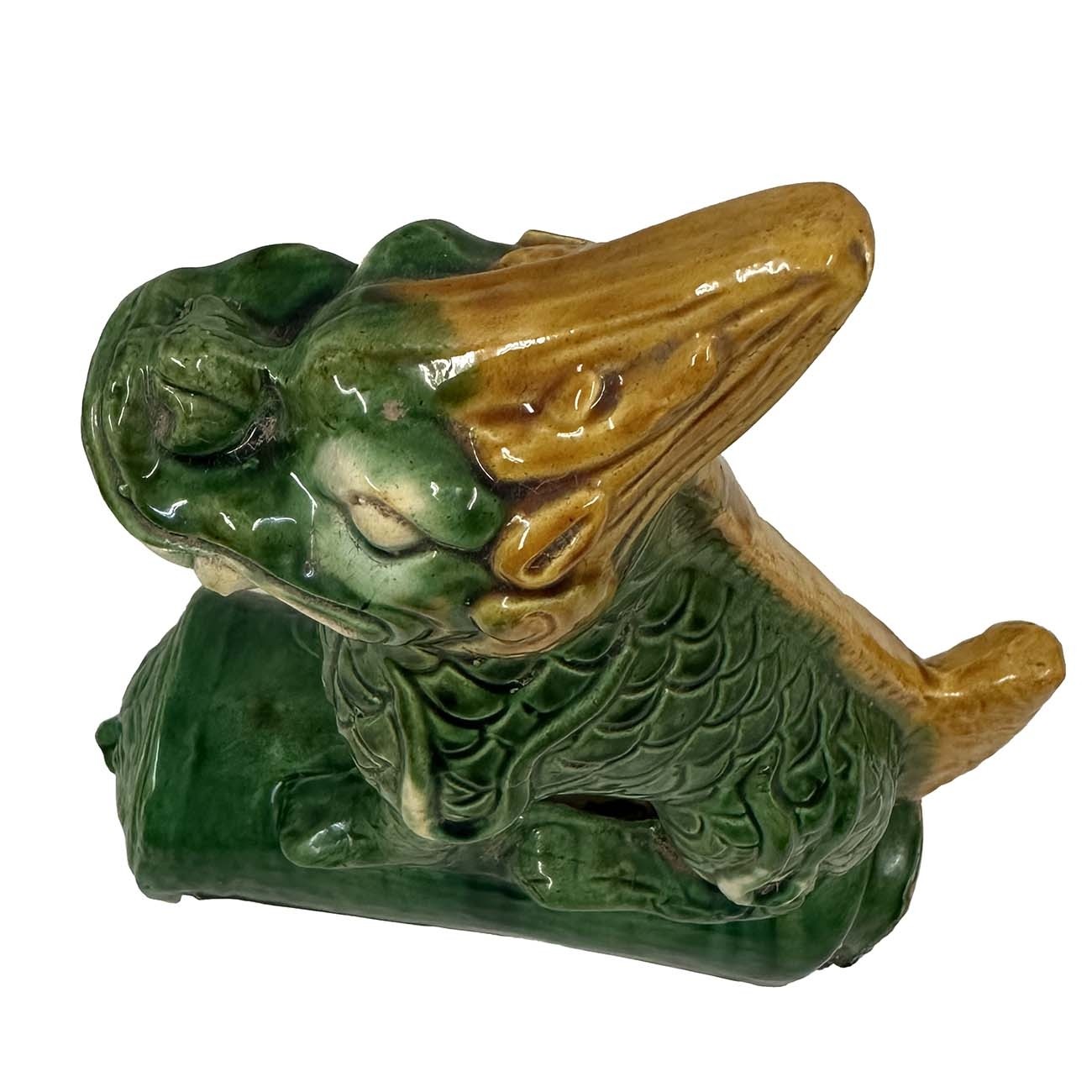 This Vintage Chinese Ceramic roof tile is 100% hand made and hand carved of Chinese traditional dragon design. It was used on top edges of building roof. Look at the pictures, there are some age wears and tiny crack hairlines on it, but it still shows the beautiful patina.