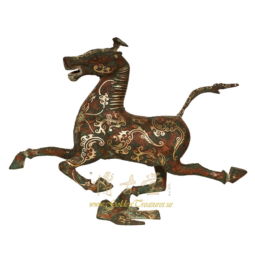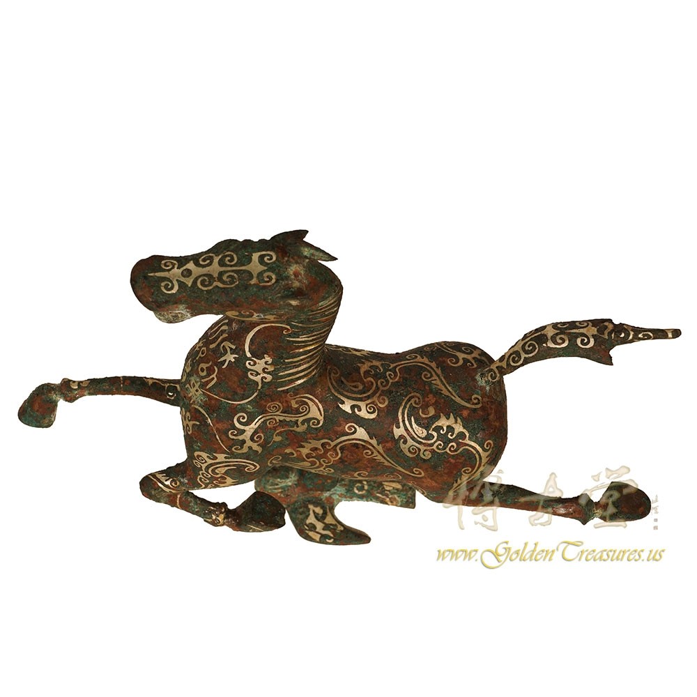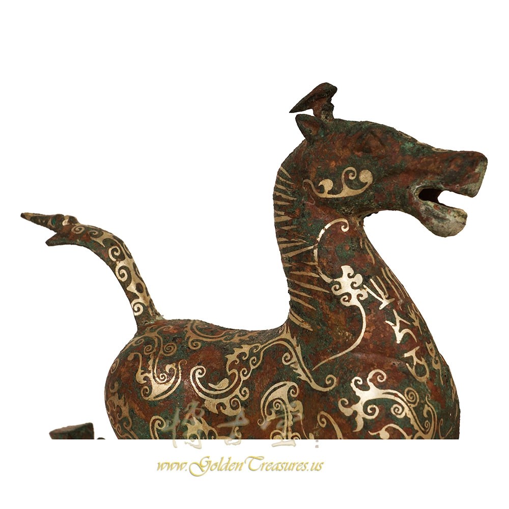 Description: This magnificent Chinese Horse stepping on swallow was made from Bronze and highlighted with silver accent Chinese pattern. Very unique and beautiful. It originally from eastern Han dynasty and has been excavated only 50 years ago from tomb in Gansu, China. This one is a Replica from 1970's. You can see from the pictures that they are in many years history with some age wears. Now you can have them on your collection shelf. Don't miss it.Disclaimer: Due to differences in monitor/screen settings, product colors may differ slightly between product photos and the physical product.
