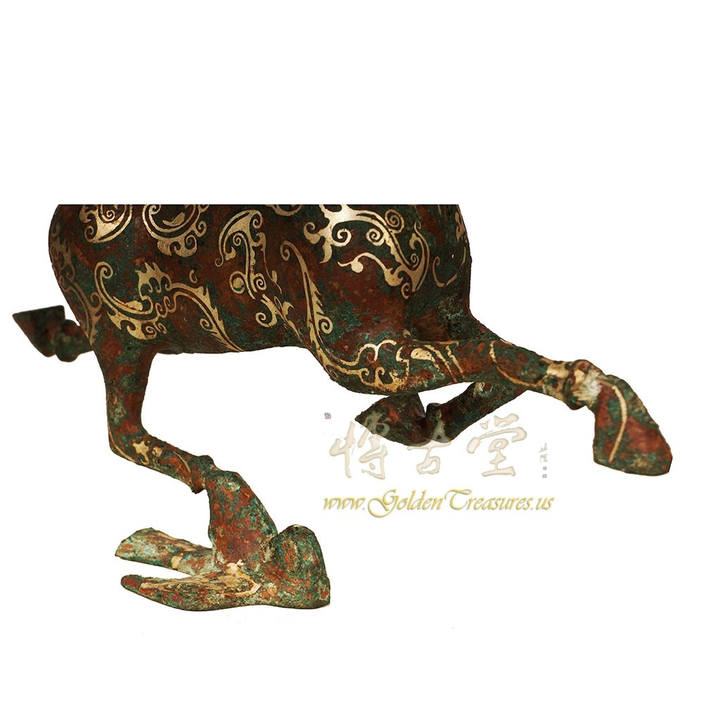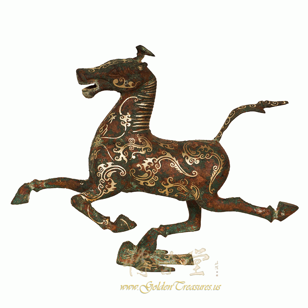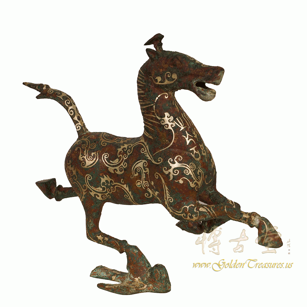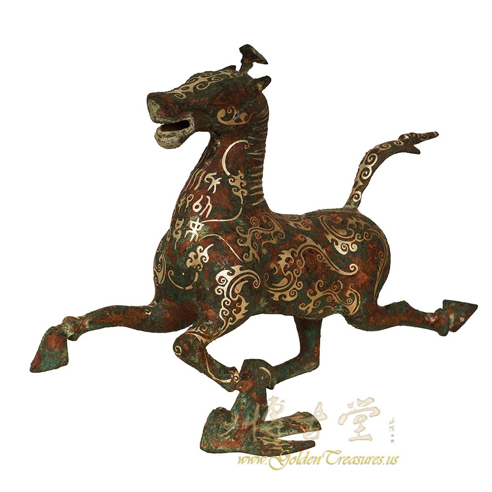 Description: This magnificent Chinese Horse stepping on swallow was made from Bronze and highlighted with silver accent Chinese pattern. Very unique and beautiful. It originally from eastern Han dynasty and has been excavated only 50 years ago from tomb in Gansu, China. This one is a Replica from 1970's. You can see from the pictures that they are in many years history with some age wears. Now you can have them on your collection shelf. Don't miss it.Disclaimer: Due to differences in monitor/screen settings, product colors may differ slightly between product photos and the physical product.