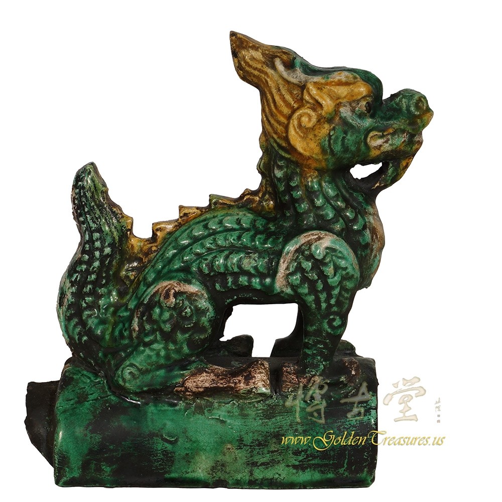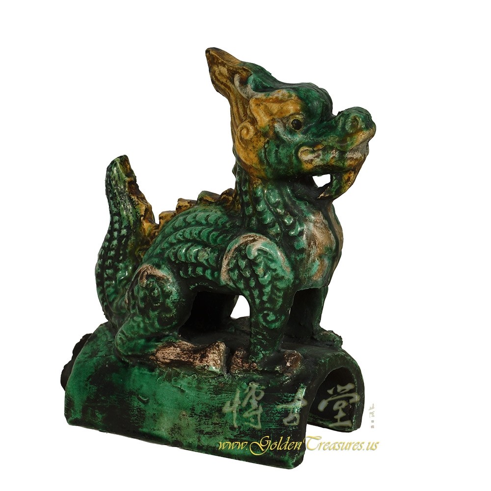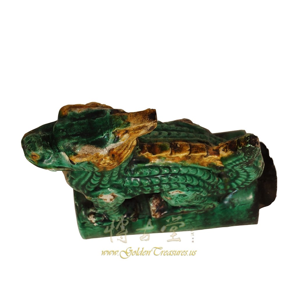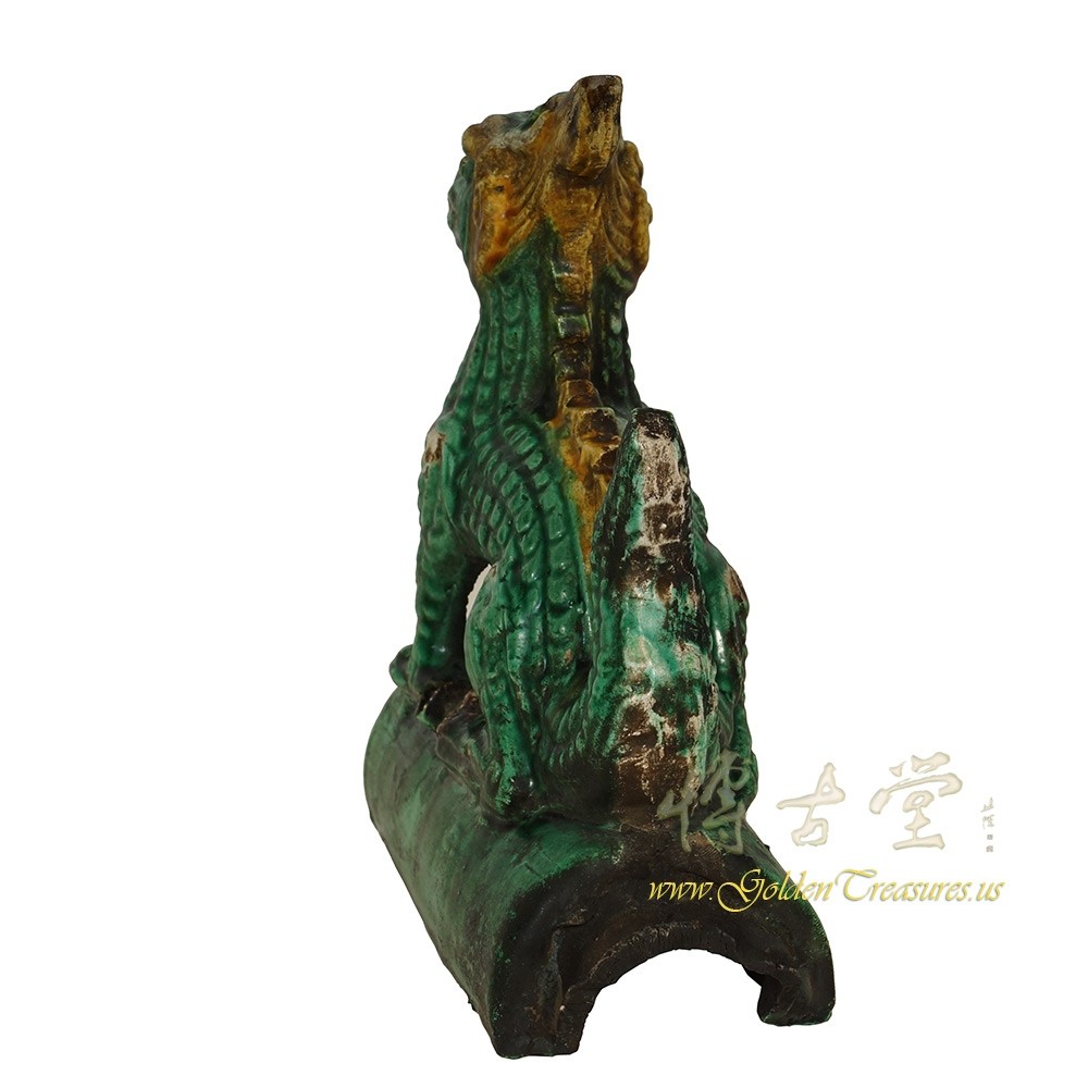 Condition: Hand made, hand carved, normal age wearThis Vintage Chinese Ceramic roof tile is 100% hand made and hand carved of Chinese traditional dragon design. It was used on top edges of building roof. Look at the pictures, there are some old chips and tiny crack hairlines on it, but it still shows the beautiful patina.